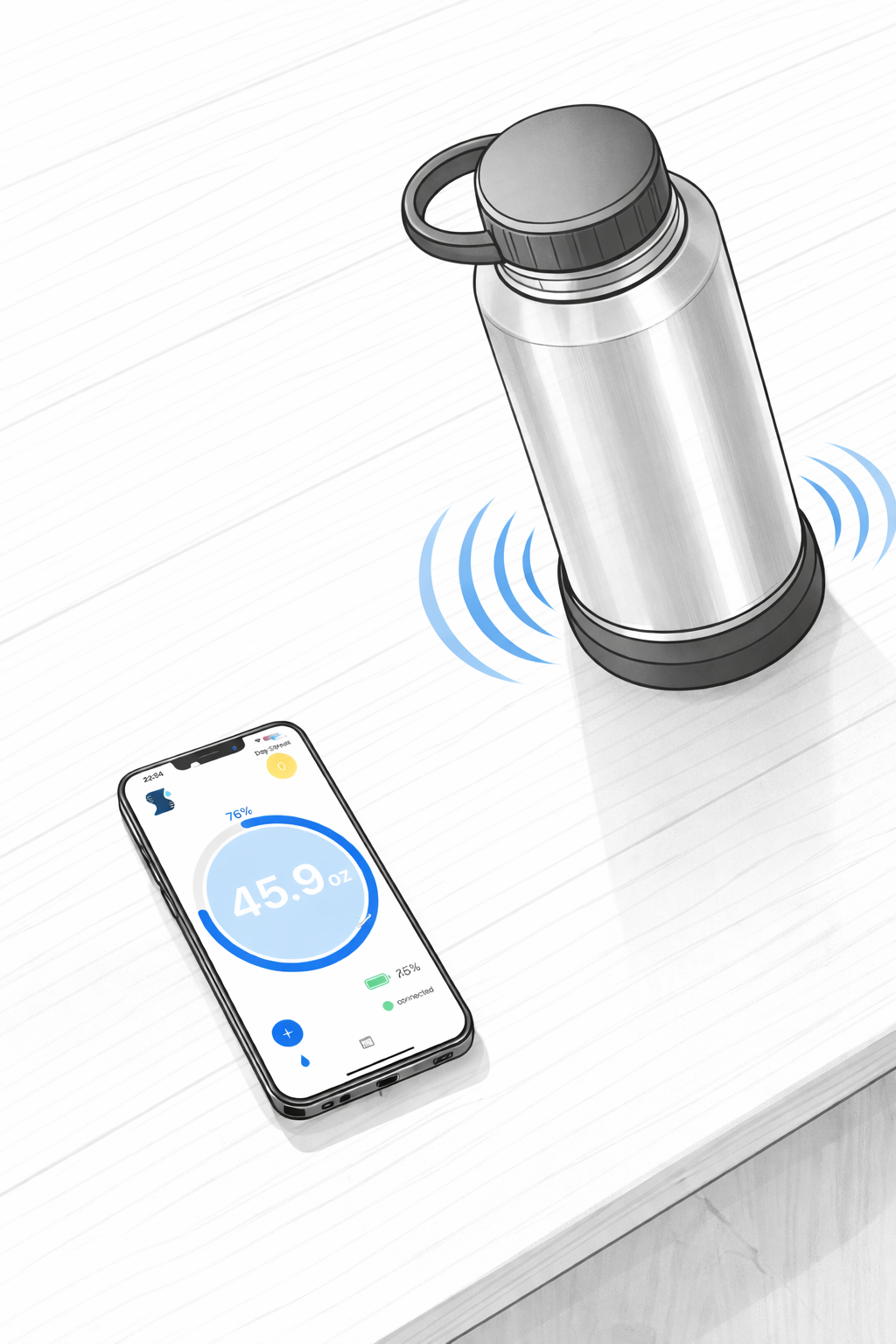 Smart sensors detect every sip and sync instantly to your phone. Real-time insights without manual entry.